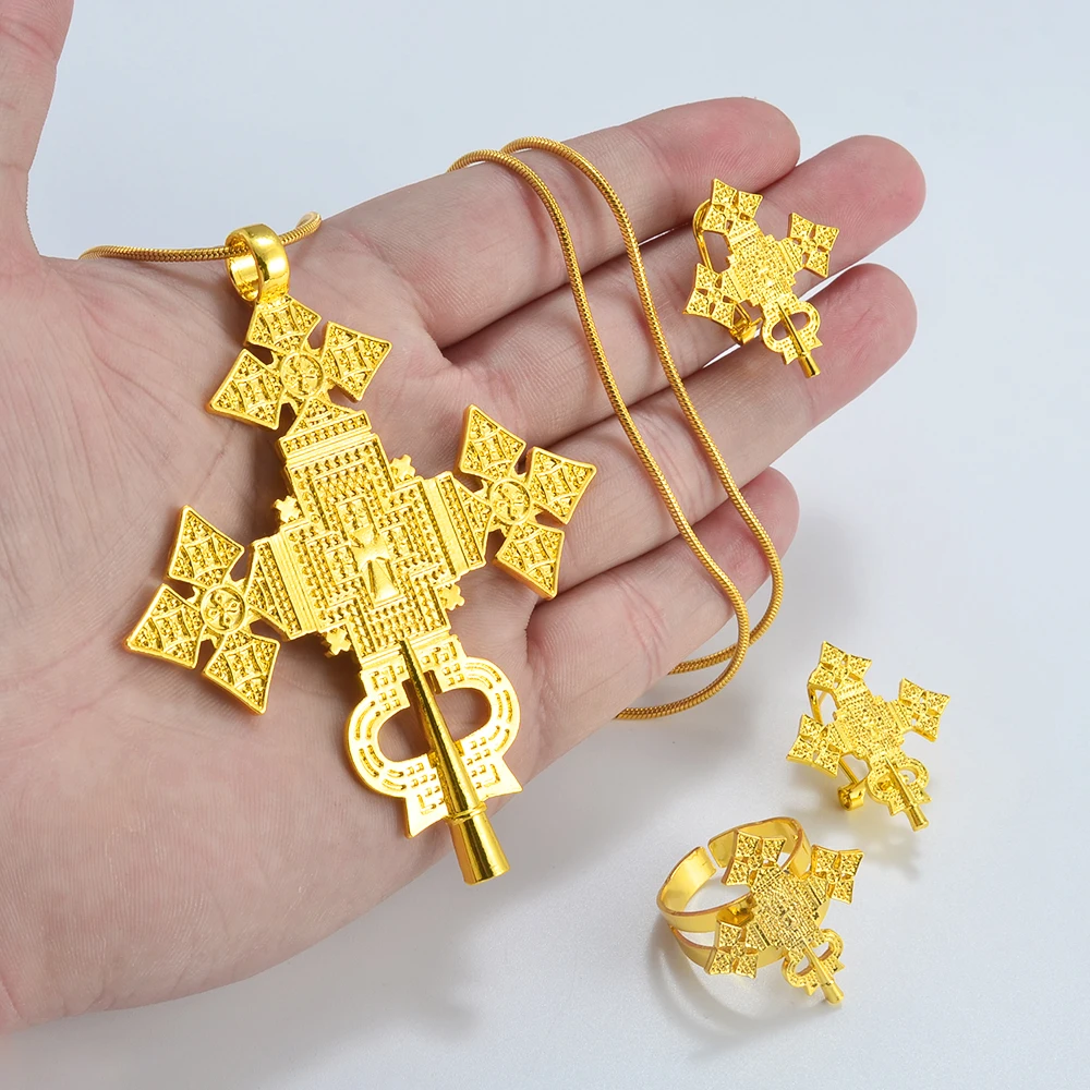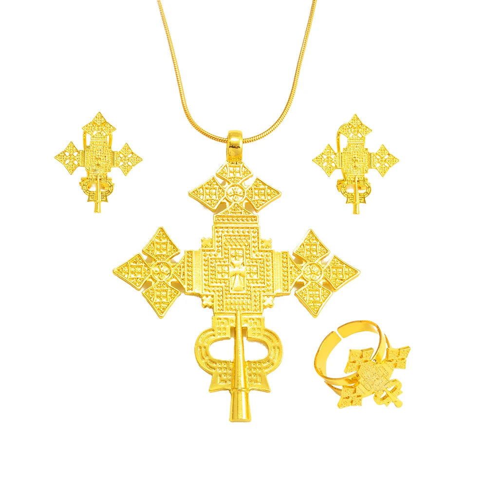 Habesha Big Cross Silver/Gold Color Jewelry Set